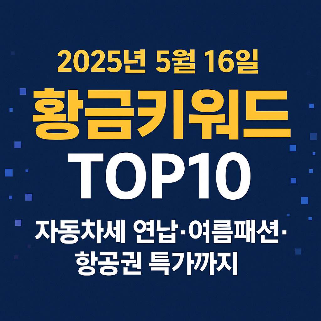 2025년 5월 16일 기준, 실시간 검색량·광고단가(CPC)·트렌드 성장률을 반영해 선정한 고수익 블로그 키워드입니다. 오늘도 정책 변화, 시즌 아이템, 트렌드 소비 주제를 중심으로 클릭률과 수익성이 높은 키워드만 엄선했습니다.